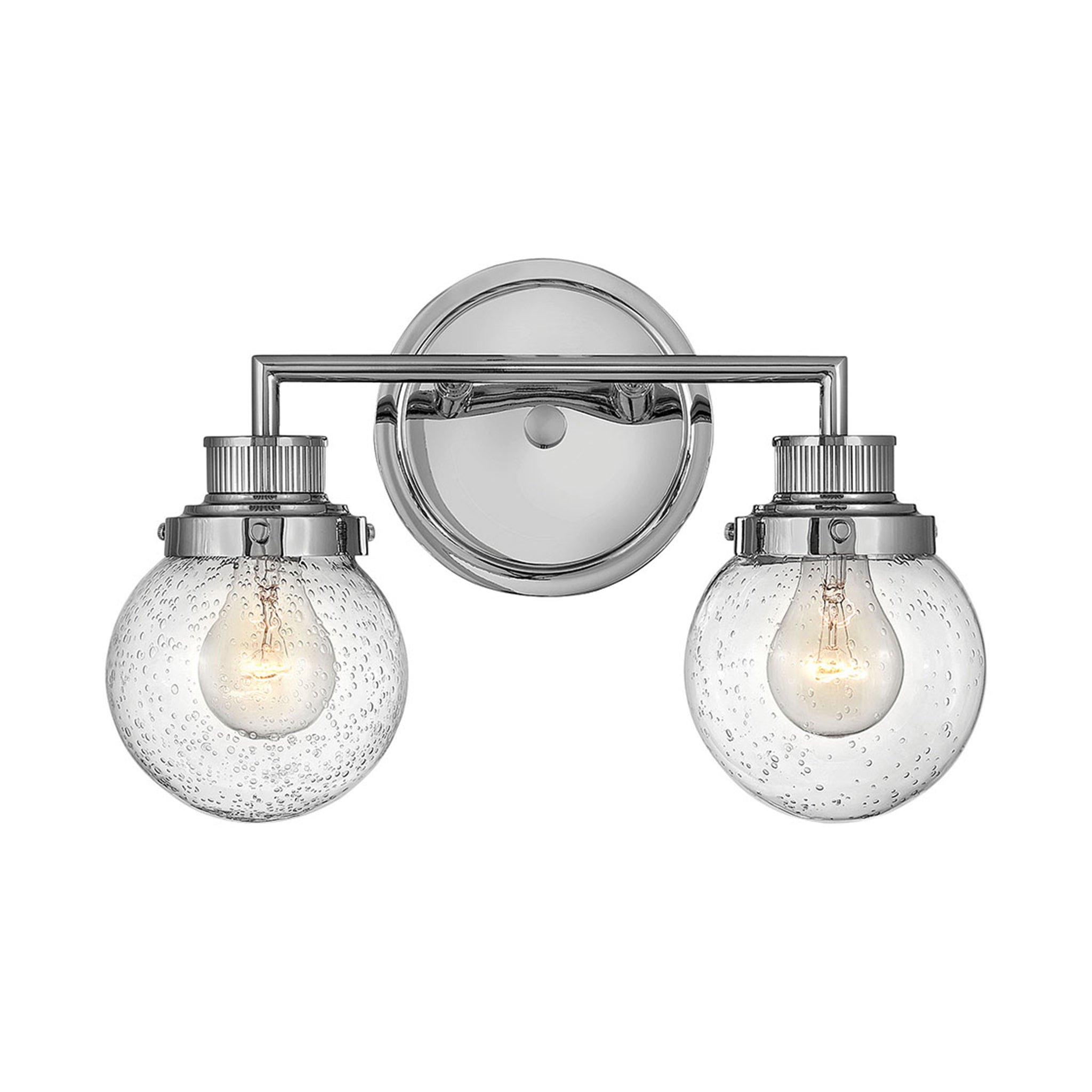 Poppy features clear glass spheres that bubble out of the refined, ribbed Chrome or Heritage Brass fitters to create a simple, yet sophisticated silhouette. An elegant, stepped backplate and crisp crossbar anchor this airy design. Poppy showcases mid-century style with a spectacular spin.