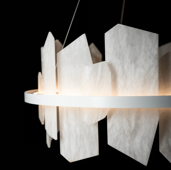 The Volterra Circular LED Pendant juxtaposes modern technology of LED light-guide with a soft stone used throughout history. As a sculptor, Designer Paul Marr Hilliard is attracted to natural materials. “Soft, subdued light with the translucent alabaster creates a warm glow. It’s a beautiful stone to work with.” We contrast that with an angular cut to the stone and have lit it each from both sides, creating a stunning wash of up and down light.