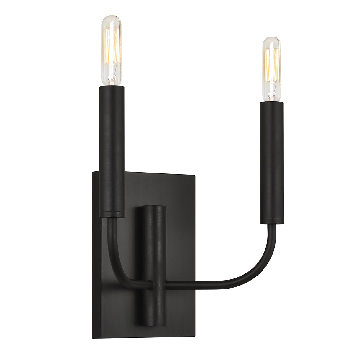 Brianna's graceful, seamless curvature and elongated tubular arms lend fluidity and modern appeal to this classic minimalist silhouette. Brianna wall sconces include cylindrical shades in fresh White Linen. Mid-Century modern with an European flare.