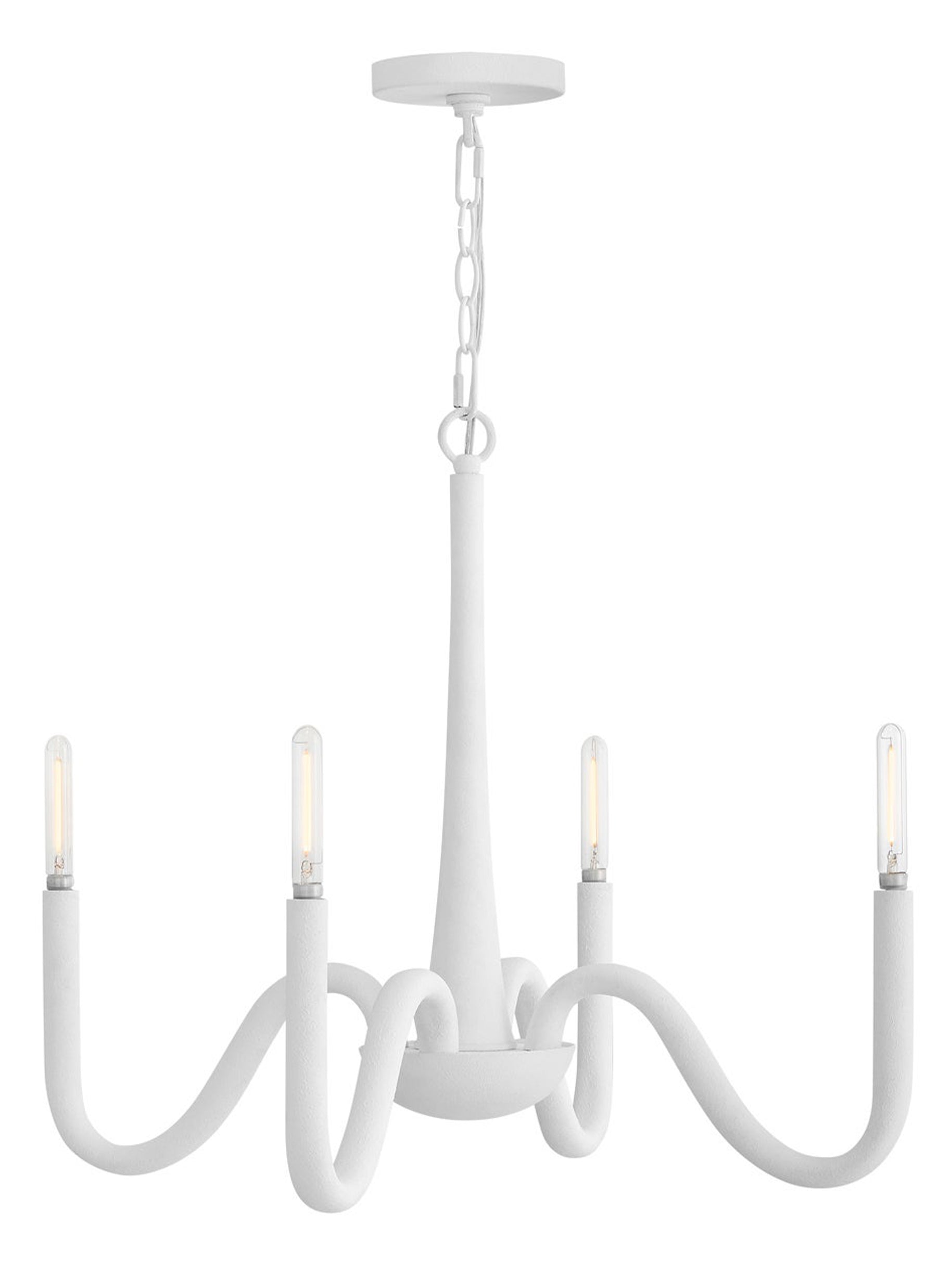 A breath of coastal freshness, Maris effortlessly complements any living or dining space. Exaggerated, curved arms with exposed candelabra lamps radiate from Maris's center, evoking a formal silhouette. A white Textured Plaster finish imparts a chic, Californian feel.