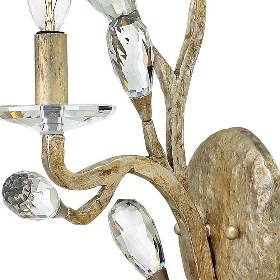 Eve's graceful, hand-forged tubing creates a natural, vine-like pattern in a hammered Champagne Gold finish while faceted clear crystal buds emanate from the tips.