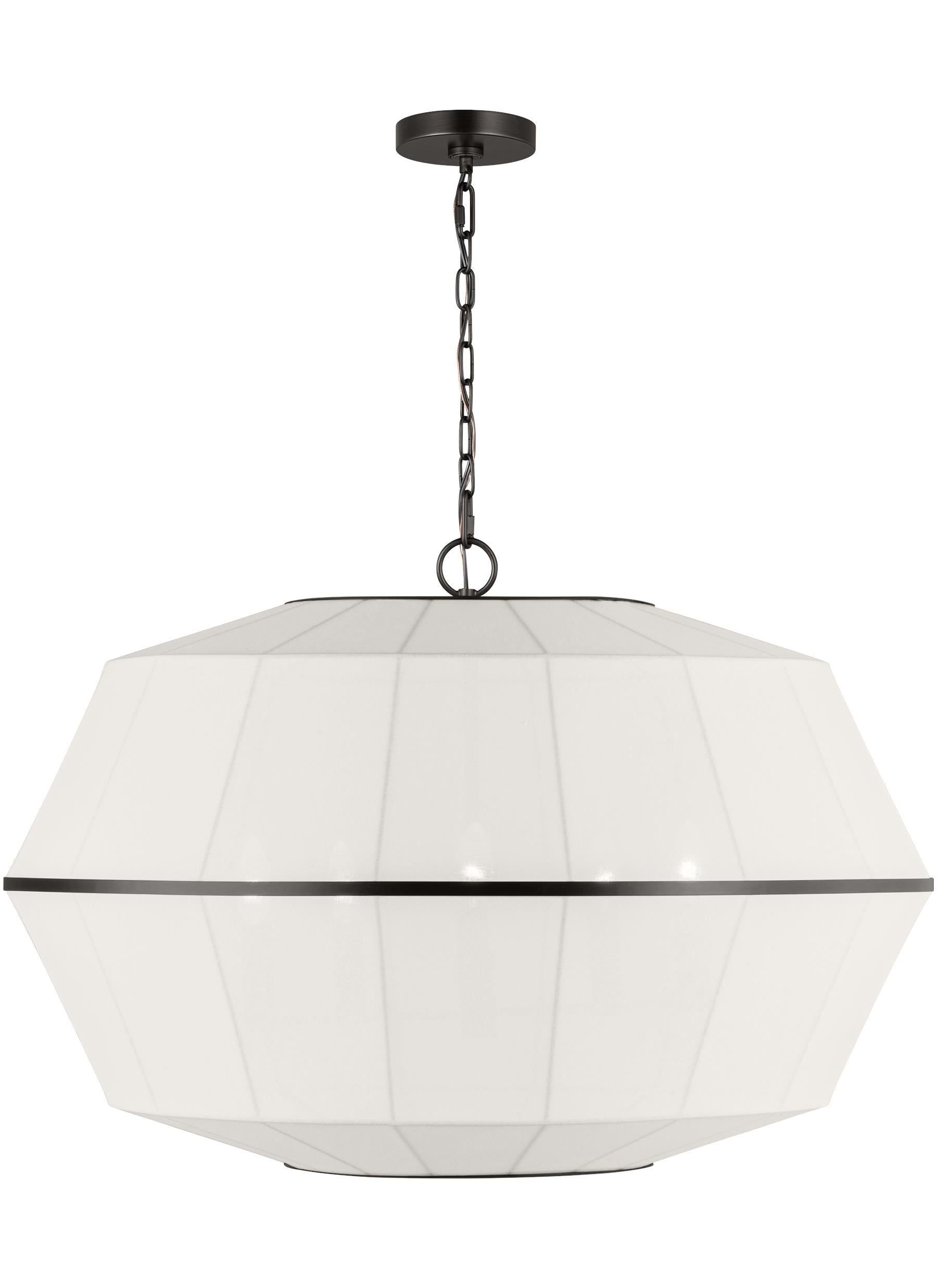Hikari is the Japanese work that translates to "light," an entertaining illumination. The Hikari collection is an Asian-modern fused design. Clean lines and crafted linen shades make Hikari unique. The minimal band at the center of the pendant - your choice of Burnished Brass or Aged Iron finishes - connect the shades making for a unified look as the light diffuses harmoniously.