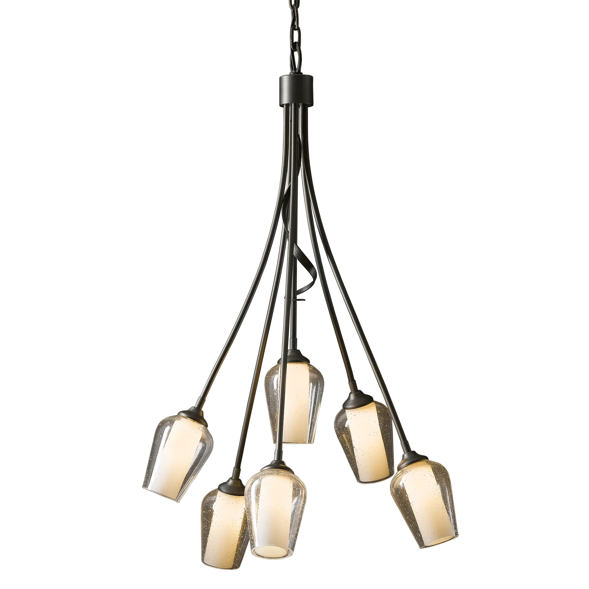 Taking inspiration from nature, our artisans fashion our six-armed Flora chandelier at our forge in Vermont. A single tendril peeks down between the light stems, giving a teasing hint of a verdant bloom soon to arrive.