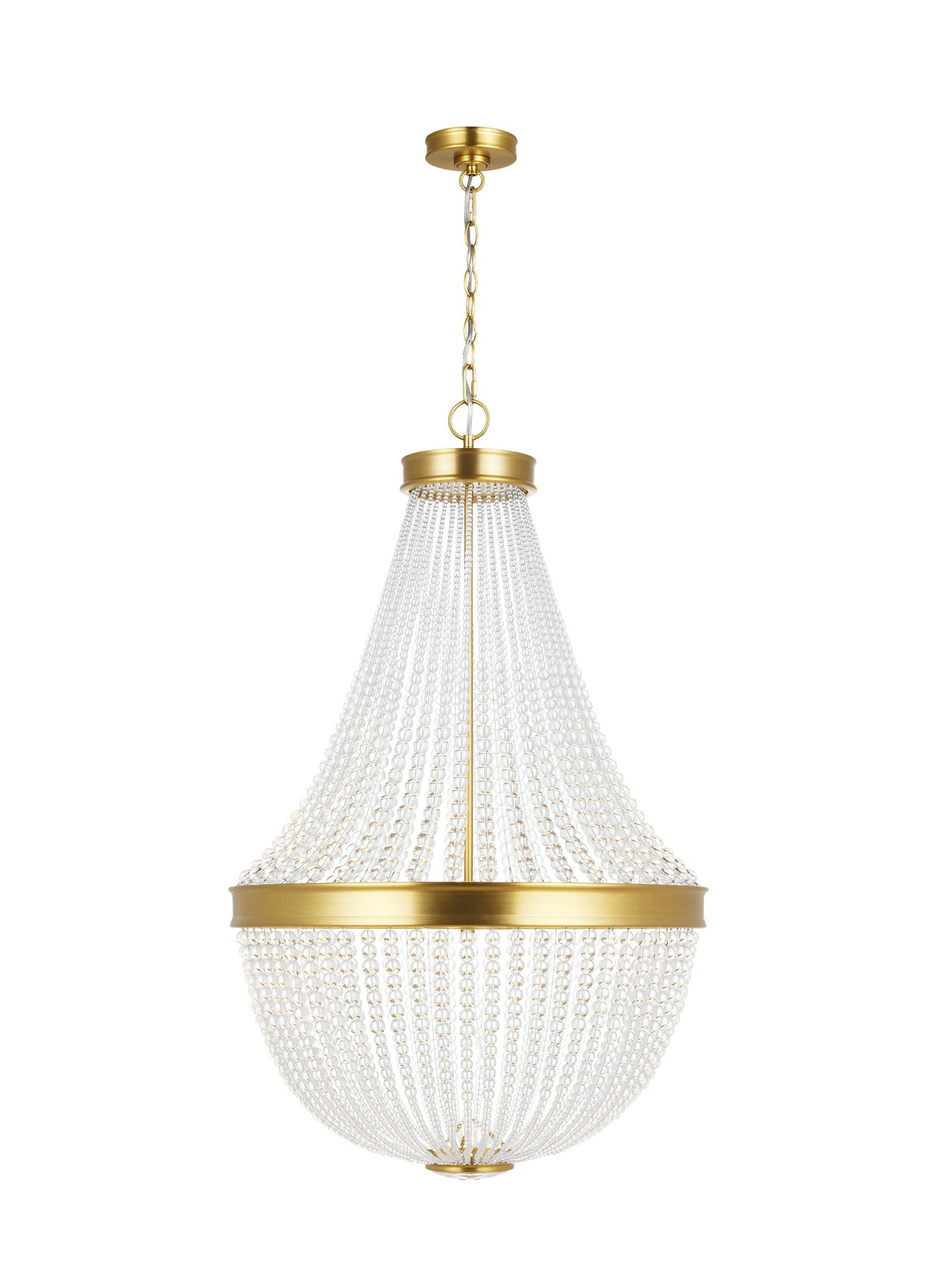 The architectural molding inspired stepped metal frame of the Summerhill collection from Chapman and Myers supports strands of graduated polished clear crystal beads. The crystal is of a stunning quality. Designed with two differing profiles - either the full traditional Empire silhouette or in the half basket - both lit from within to cast a shimmering light through the crystal draping.