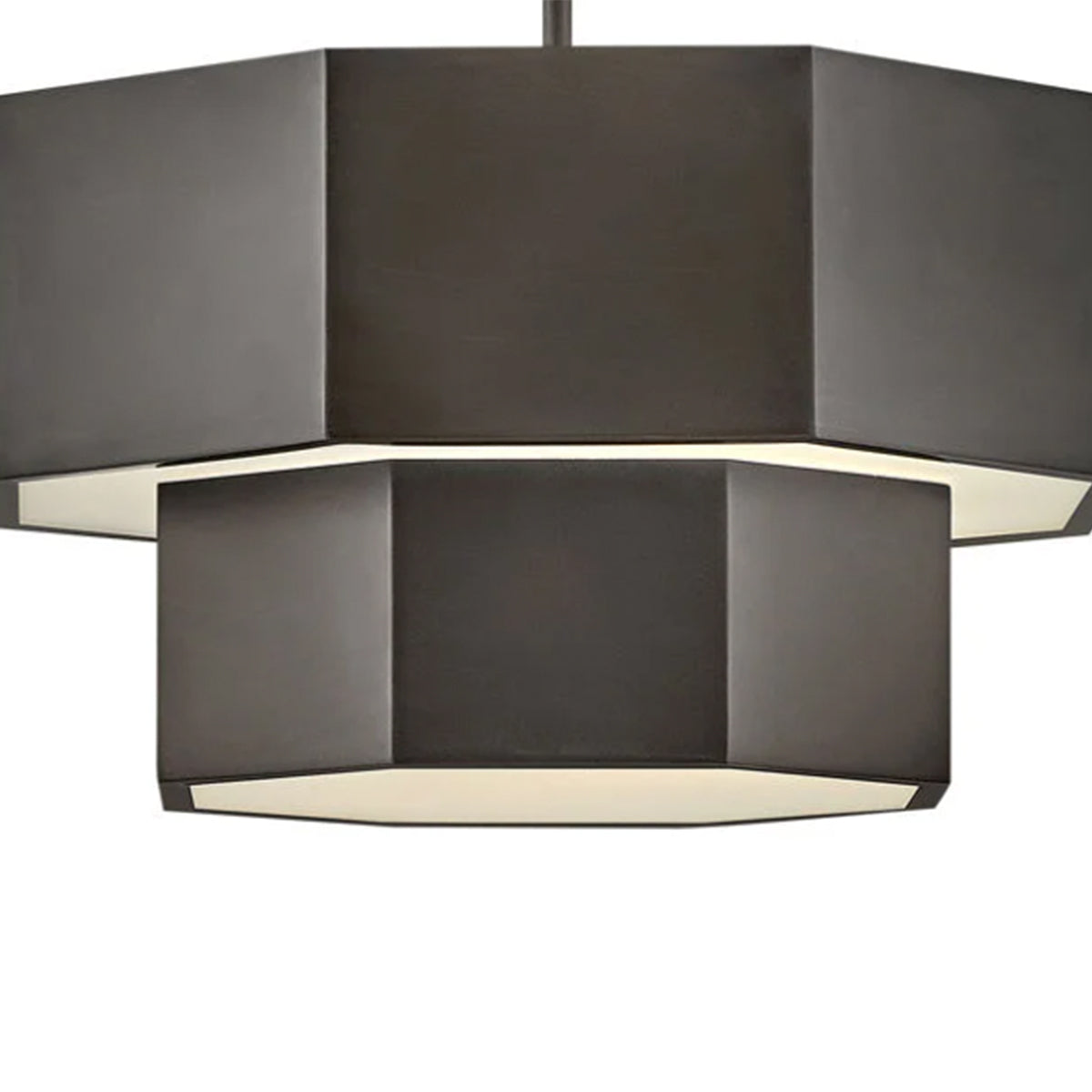 View the many sides of Facet. Interesting angles combine with bold metal features to create an edgy and contemporary profile that is unpretentious yet unforgettable. Hexagonal etched glass is showcased by Heritage Brass or Black Oxide finishes.
