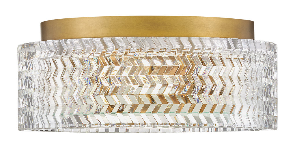 Traditional elegance with a modern edge defines Elle's graceful design. Rich chevron cut glass provides interesting light refraction and is a dramatic focal point whether the light is on or off. The gleaming metal finish adds to the glam design that gives a touch of radiance to any space.