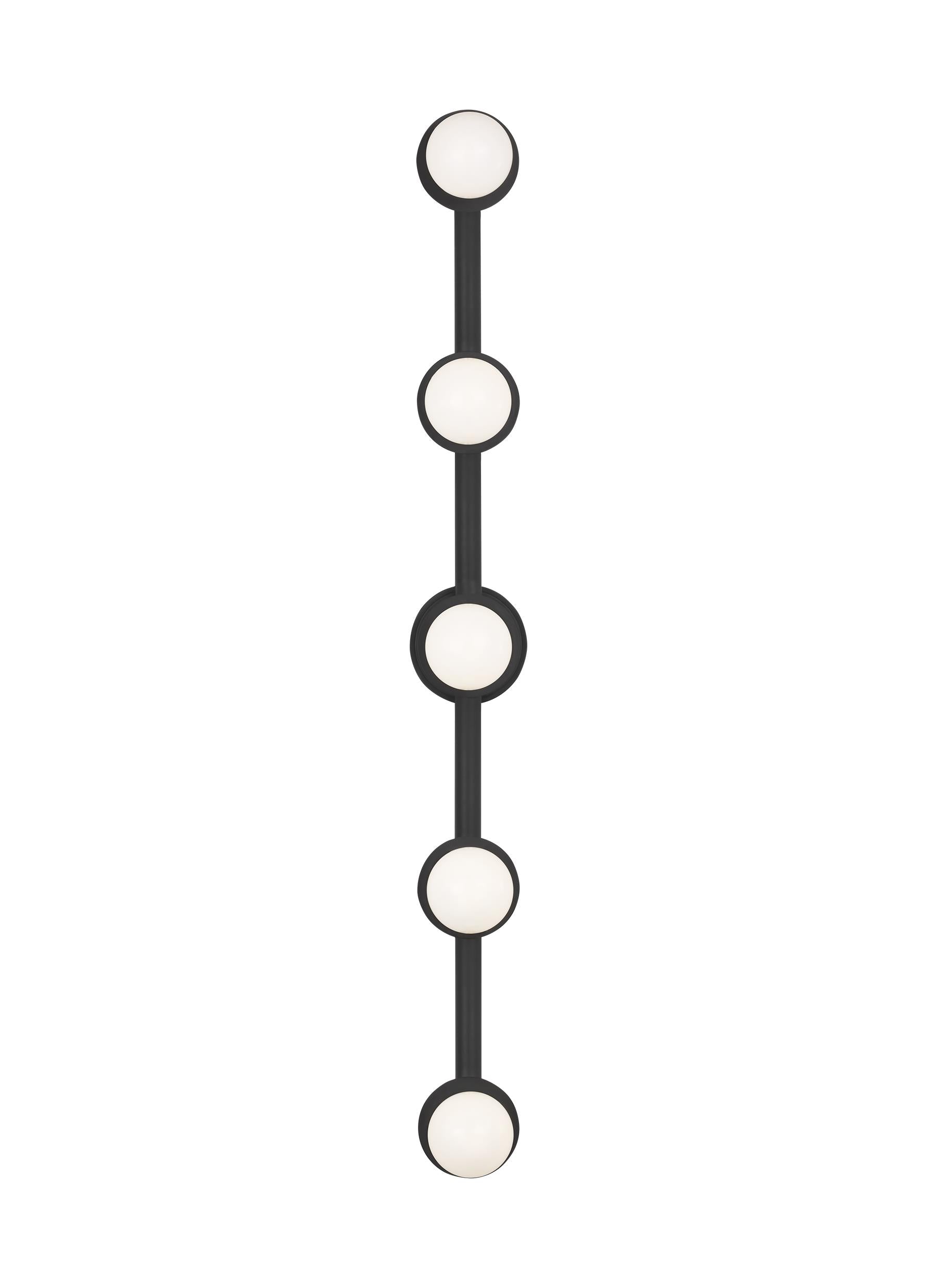 Nodes wall lighting is minimal yet bold, highlighting Kelly's distinctive juxtaposition of mixed-materiality and curvilinear form. Light radiates from milk glass globes set against metal discs. All fixtures can be used or without the discs.