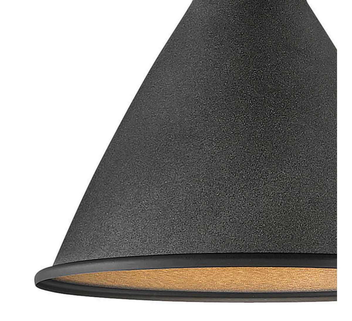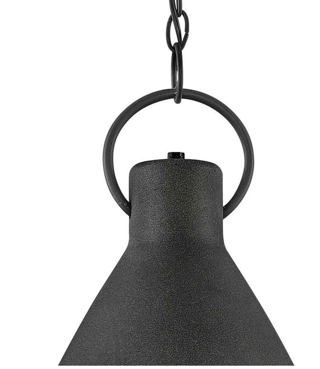 The profile is simple, hardworking and meant to reflect the farmhouse style it complements so well. A metal shade in Dark Antique Brass, Rustic Pewter, Polished White or Aged Zinc, it features a bottom ring and an oversized loop in Textured Black. Wiring is threaded through the loop, instead of being exposed, which ensures the look remains clean, casual and tasteful.