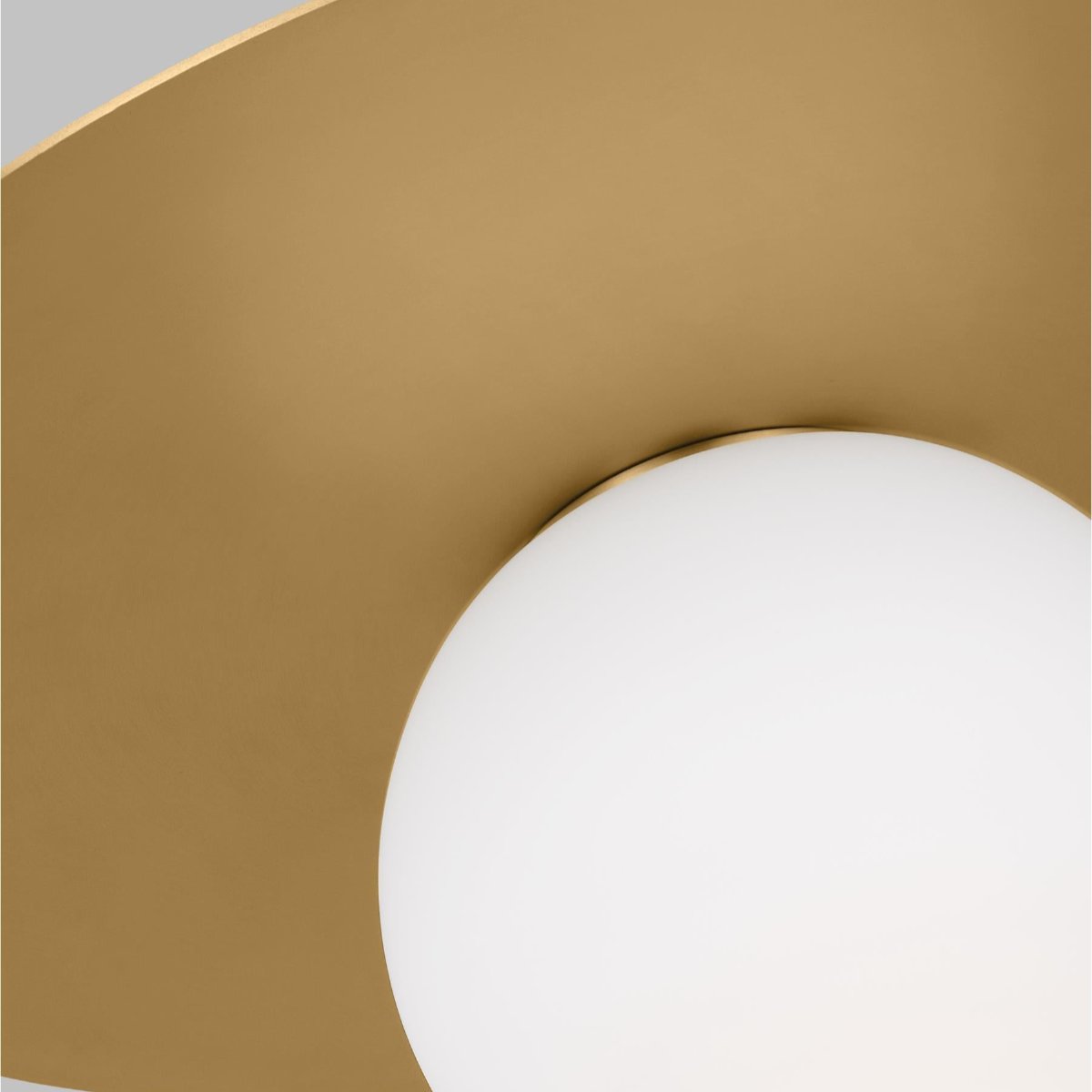 Nodes pendant is minimal yet bold, highlighting Kelly's distinctive juxtaposition of mixed-materiality and curvilinear form. Light radiates from milk glass globes set against metal discs. All fixtures can be used or without the discs.