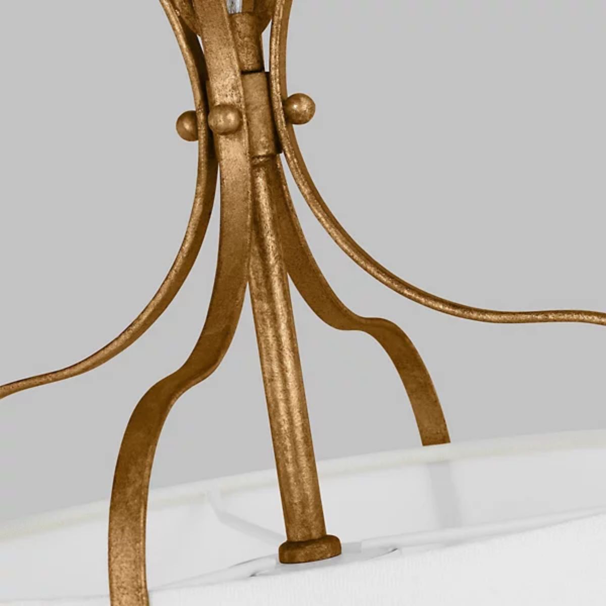 Encased in an Antique Gild or Smith Steel frame, this design emits a soft glow behind a fabric Linen shade. Perfect for the Hamptons styled lounge, bedroom or dining area, this elegant smaller pendant is classically chic.