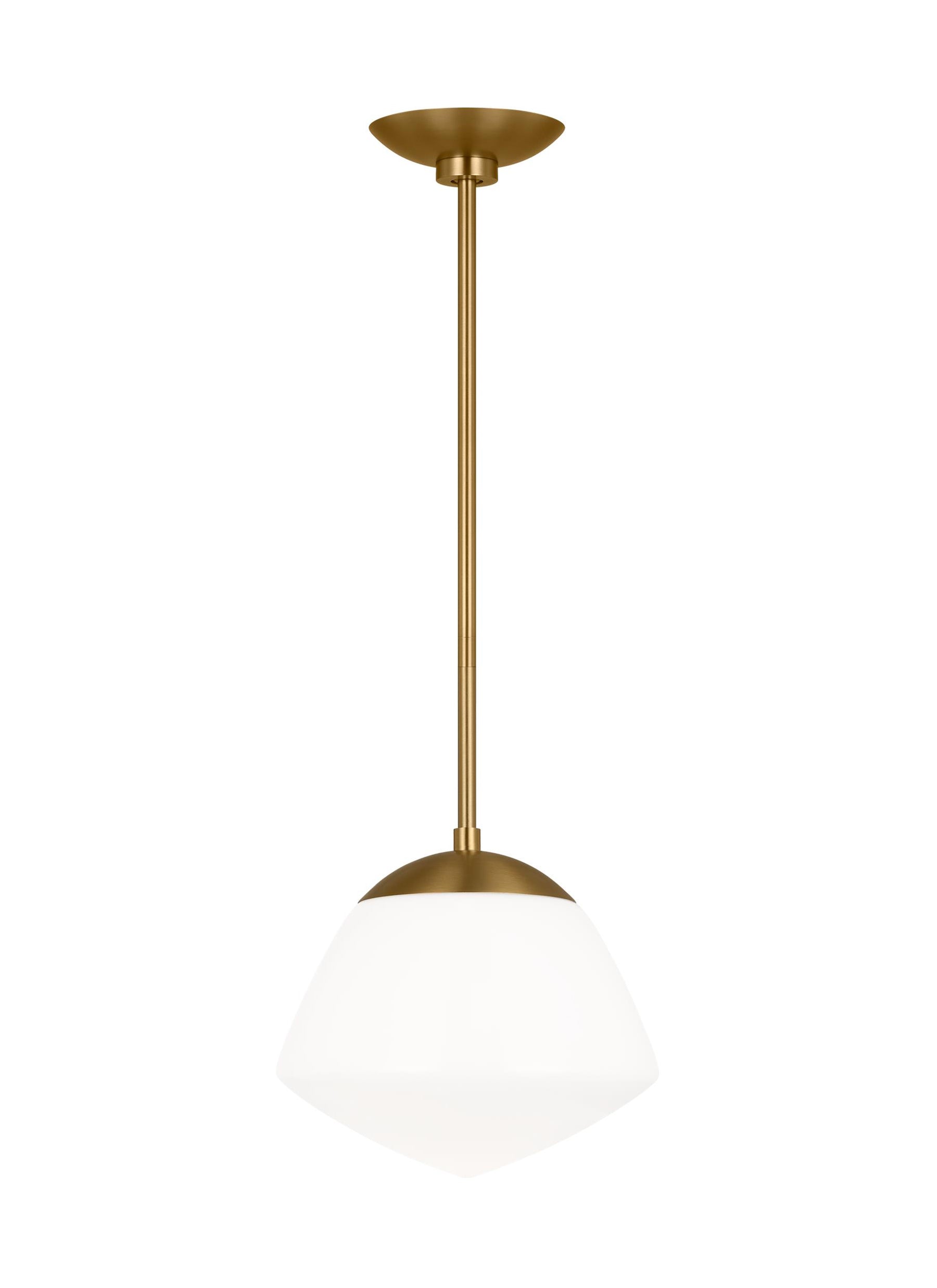 Ellen DeGeneres has taken an American school house classic and added a European vibe, with perfectly formed Milk White glass shade. The pendants are available in two sizes with your choice of Burnished Brass or Midnight Black finish.