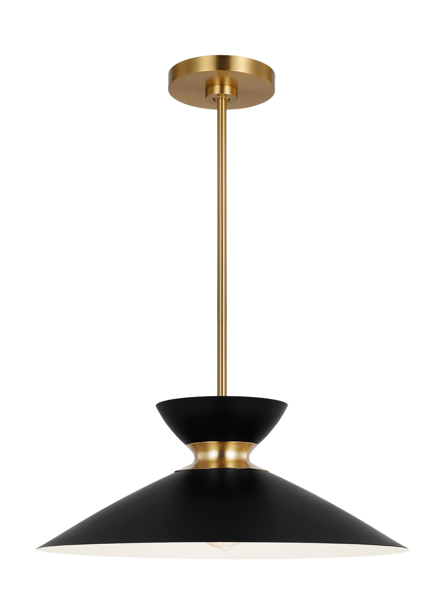 Heath is a chic pendant crafted of metal with a Burnished Brass or Polished Nickel finish with conical shade in a Midnight Black or Matte White shade. This Mid-Century styled pendant designed by Ellen DeGeneres fits perfectly across the bench top in the kitchen, casting plenty of light downward.
