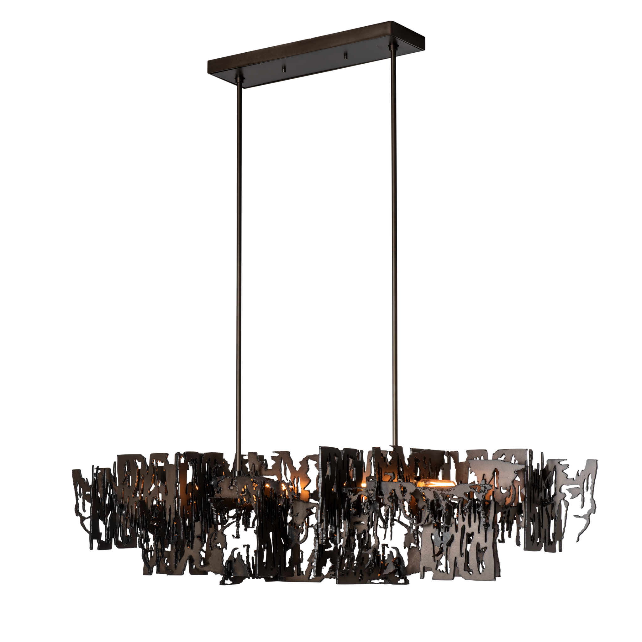 Brutus Pendant is a statement piece that will make a bold and aggressive statement in any space. The Brutalism movement of the ‘60s and ‘70s is revisited with this pendant design. Welded layers of steel are combined to create a unique, one-of-a-kind lighting fixture. Part of ART + ALCHEMY by Hubbardton Forge.