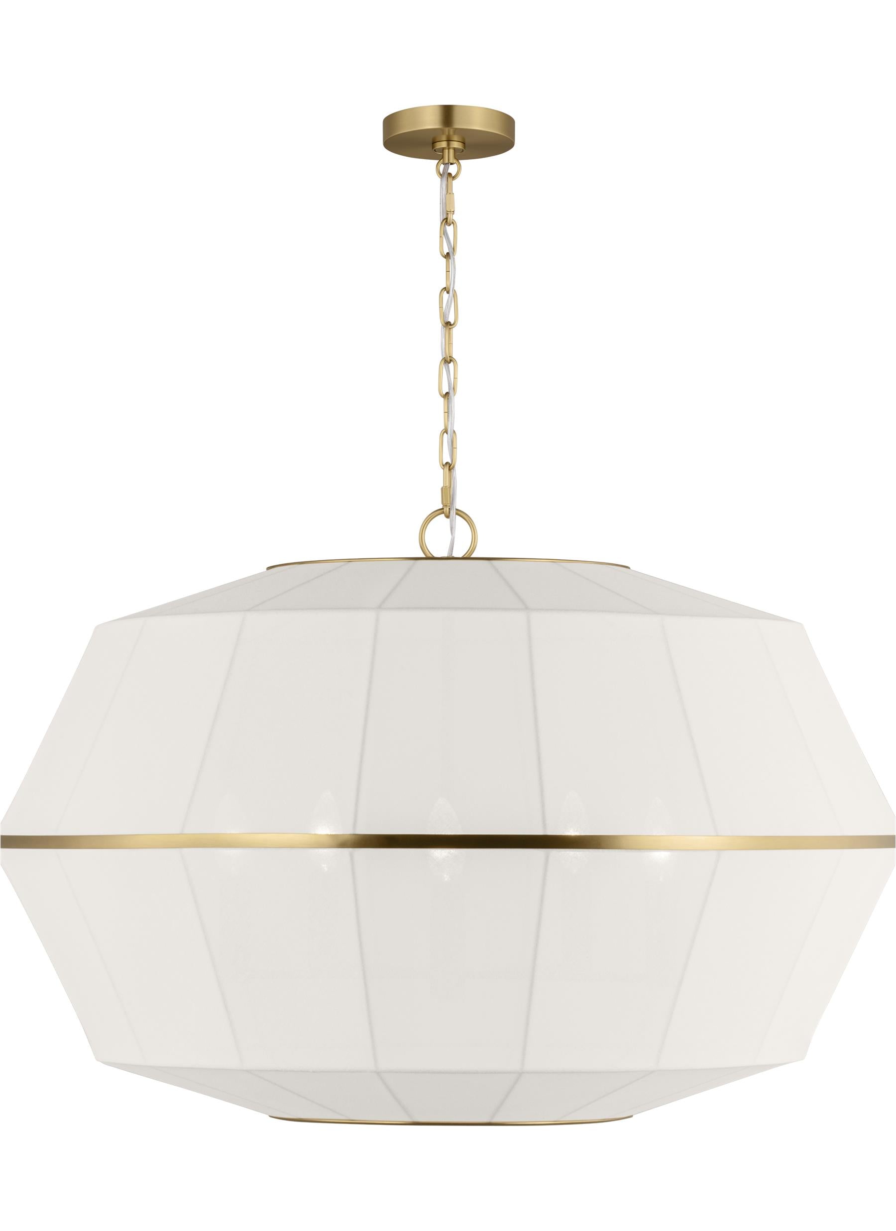 Hikari is the Japanese work that translates to "light," an entertaining illumination. The Hikari collection is an Asian-modern fused design. Clean lines and crafted linen shades make Hikari unique. The minimal band at the center of the pendant - your choice of Burnished Brass or Aged Iron finishes - connect the shades making for a unified look as the light diffuses harmoniously.