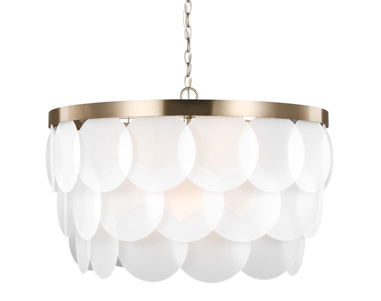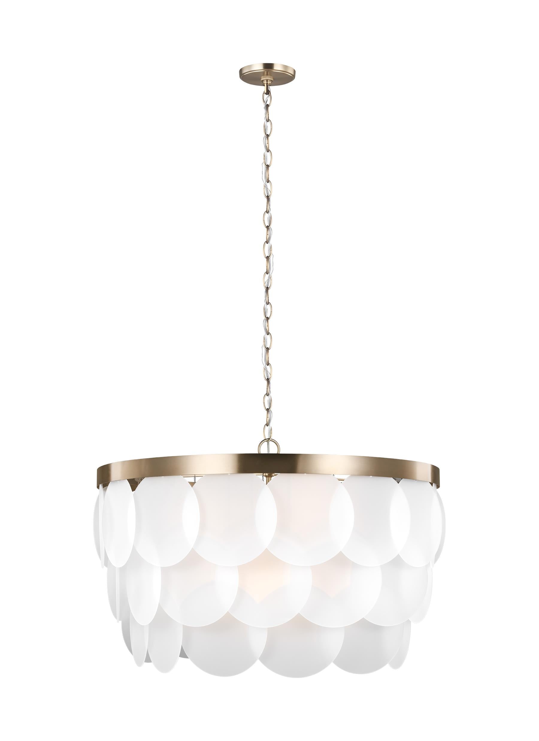 Full of structure and movement the Mellita chandelier gracefully positions multiple tiers of oversized etched glass disks. Named for a species of sand dollar found on the East Coast of North America.