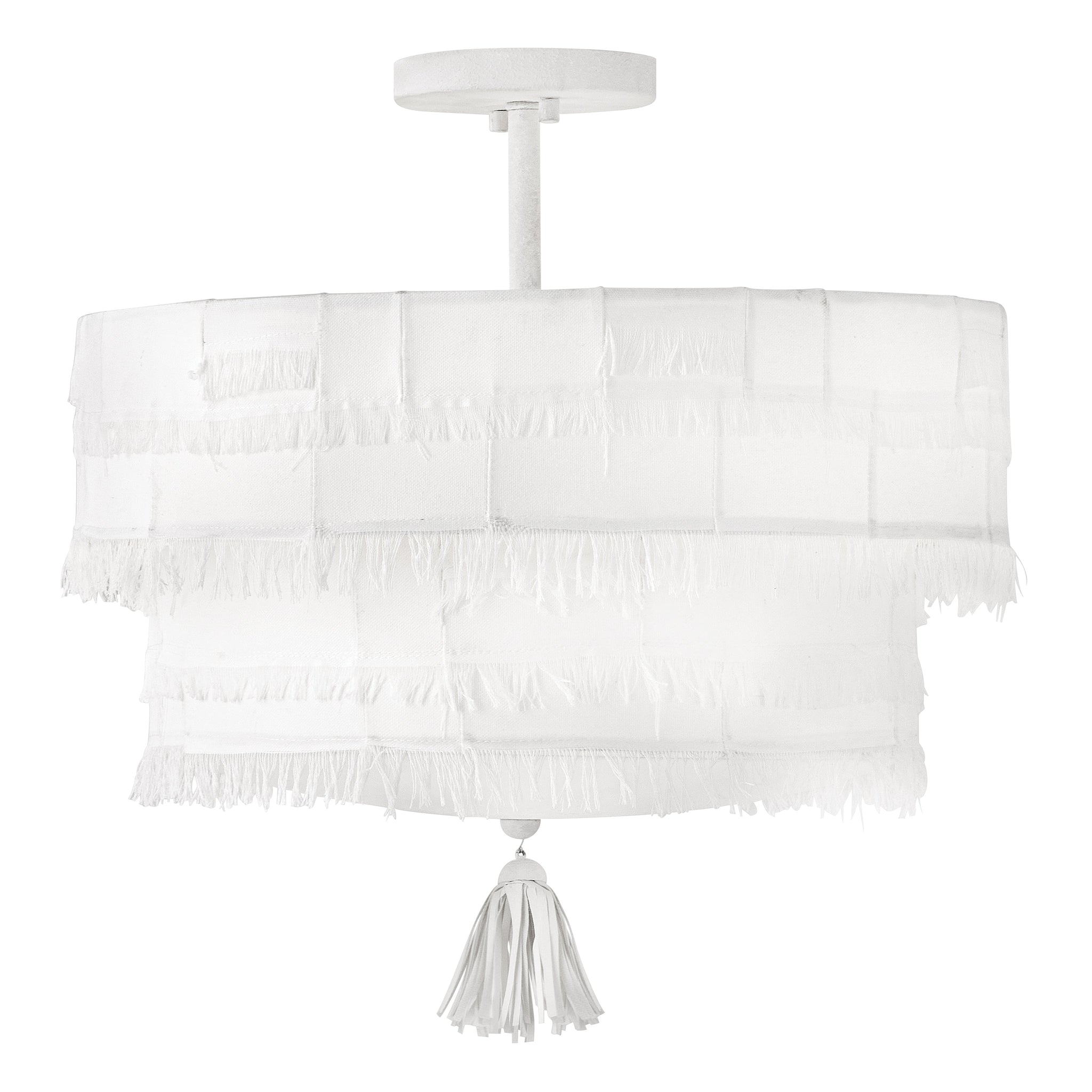 Taking a nod from current distressed fashions, Baya’s soft, hand-sewn patchwork shade creates a light and elegant feeling. Its coastal cottage style and chic texture make an artsy transitional statement complemented by a leather tassel, comfortable dimmable lamping, and a Textured Plaster finish.