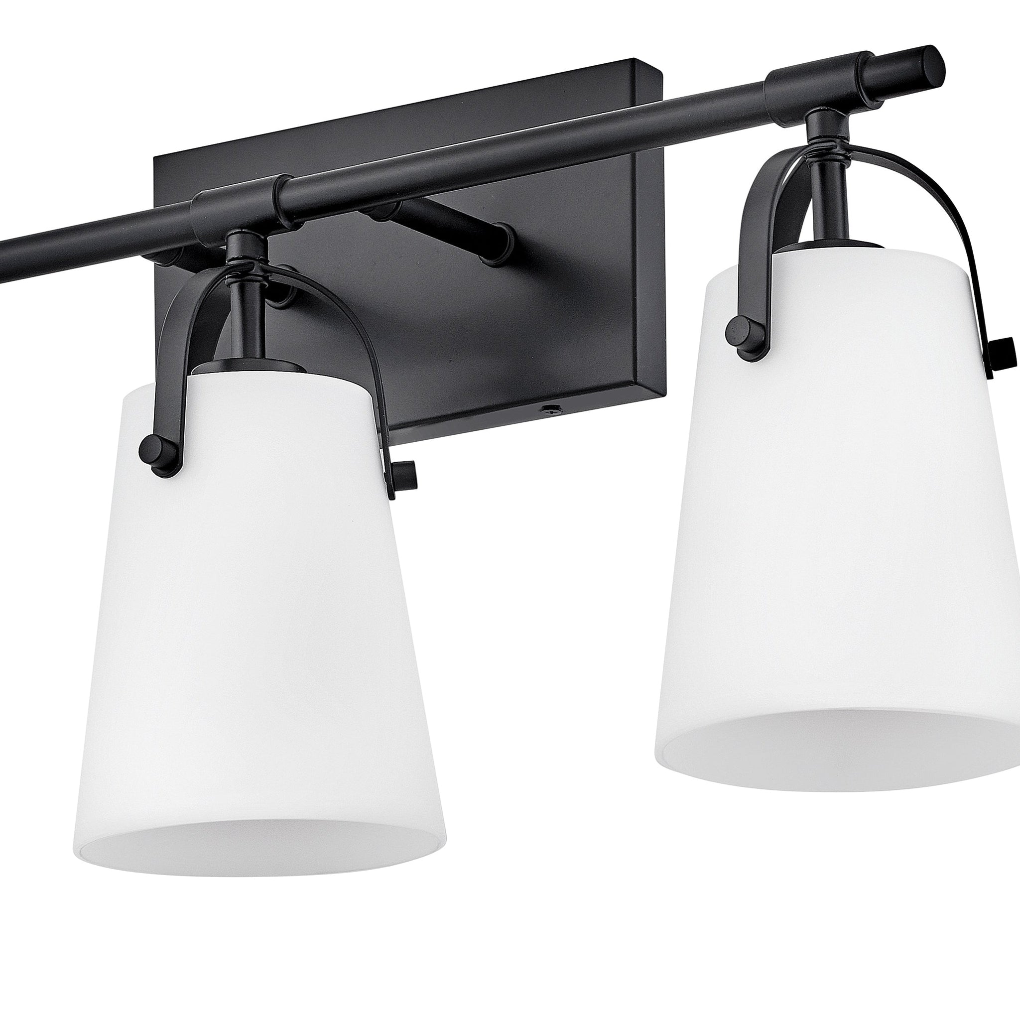 Clean and airy, Foster breathes composed simplicity into a bath space. Softly tapered clear glass, suspended from an arched handle, adds pizzazz to its transitional shape. Ideal for filament bulbs.