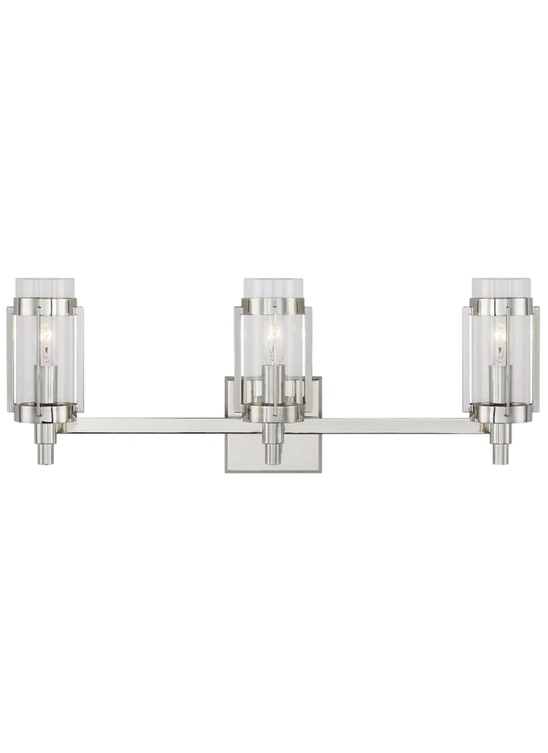 The best of mid-century design features clean, sleek lines and geometric shapes. And that is exactly the classic style the Flynn family from Ralph Lauren brings to your home. Straight arms hold metal, vertical glass tubes creating a simple, clean form, all warmed by a Polished Nickel or Time Worn Brass finish.