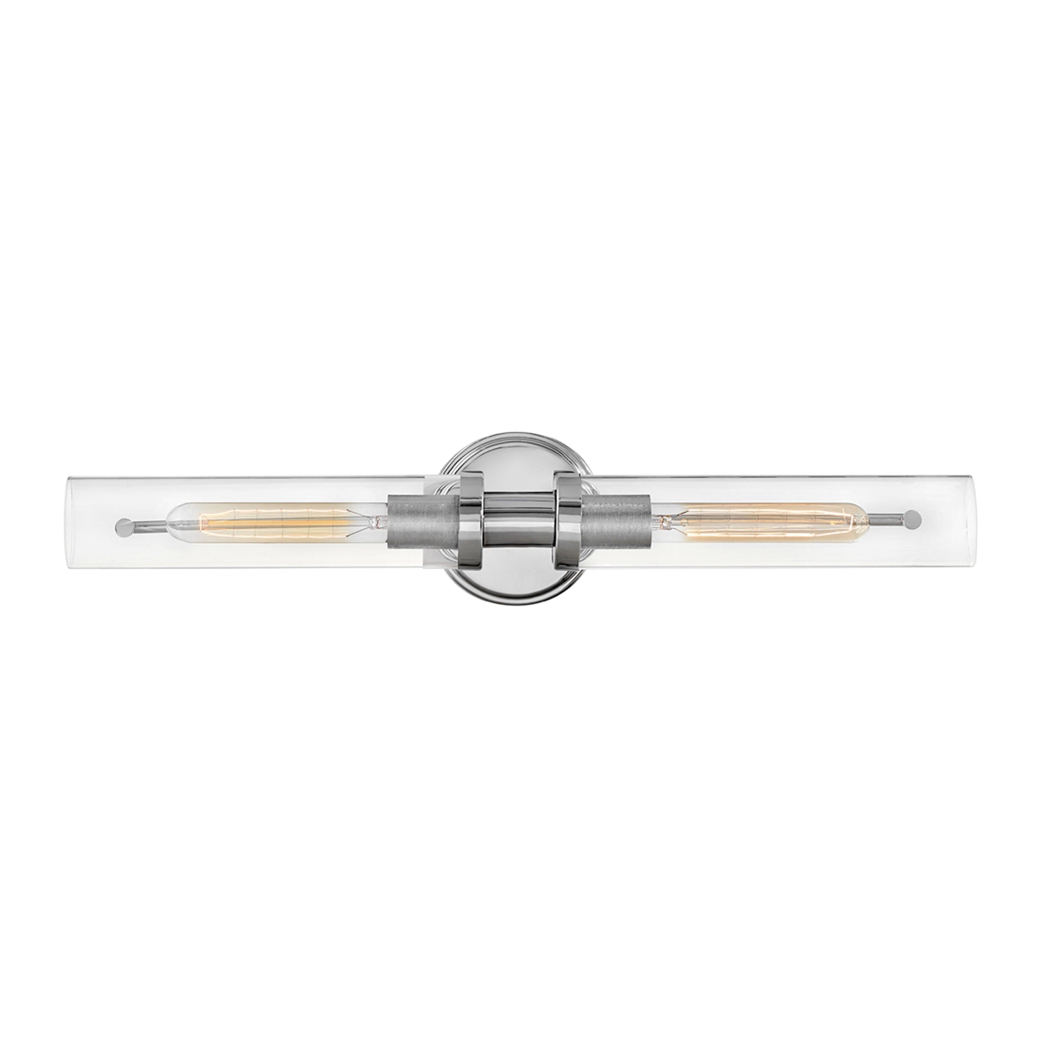 Vaughn boasts industrial chic in all the right ways. A streamlined design seamlessly combines modern and vintage elements for a refined look. Clear glass shades add dimension to the recommended vintage style filament bulbs and showcase the diamond knurled sockets within. Offered in three finishes, Heritage Brass, Chrome or Black Oxide with Heritage Brass highlights, Vaughn is versatile enough to fit all decors.